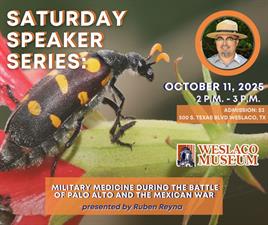 What's a blister beetle? Come learn more about military medicine as we welcome Ranger Ruben Reyna to our Saturday Speaker Series on October 11, 2025. This fascinating presentation is an encore presentation of Ranger Daniel Ibarra's presentation in May. You don't want to miss it!